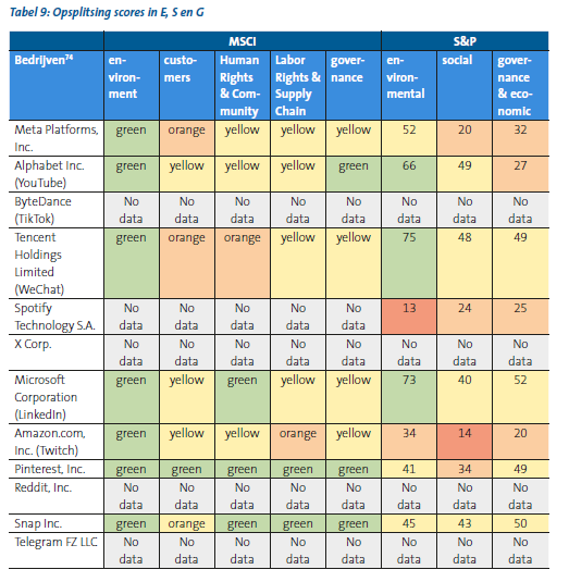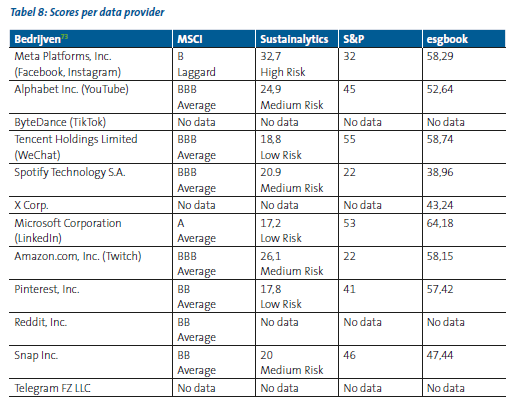 vergelijking met de andere data providers. De ESG-scores van socialemediabedrijven