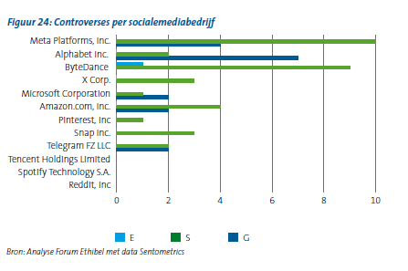 deze controverses zijn verdeeld over socialemediabedrijven en ESG-categorieën. De